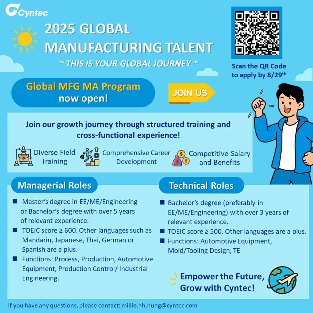 乾坤科技(台達集團) 2025 Global MFG MA Program全球製造人才/儲備幹部計畫持續熱烈招募中