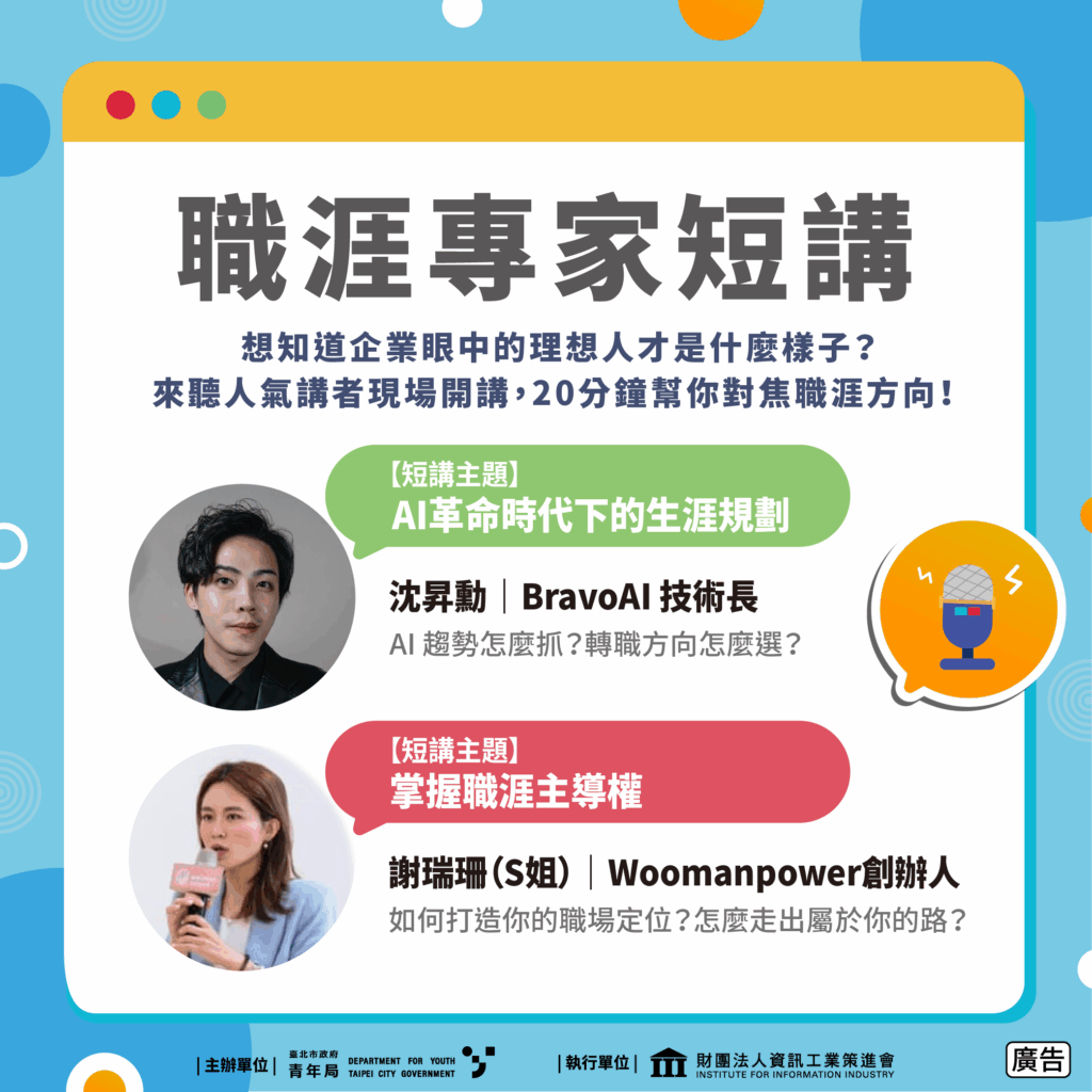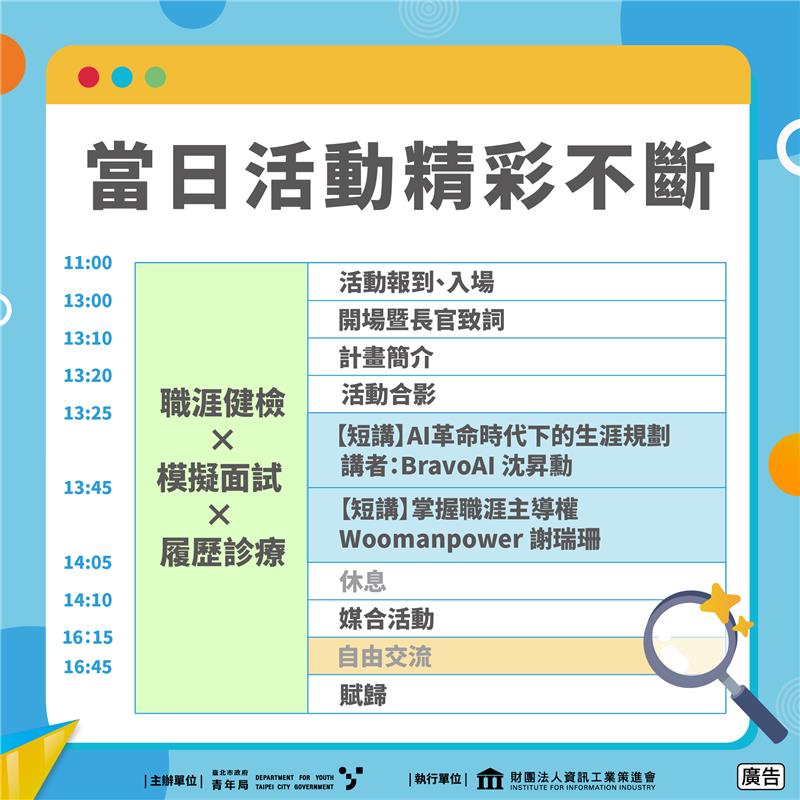 (二)活動資訊:1、企業媒合會時間:114年7月25日 11:00-16:402、企業媒合會地點:臺北市復興南路一段390號15樓3、活動報名連結:https://ievents.iii.org.tw/EventS.aspx?t=0&id=28594、參與企業:16家媒合企業名單詳見附件說明。