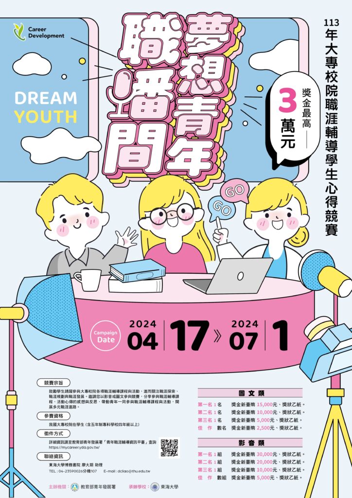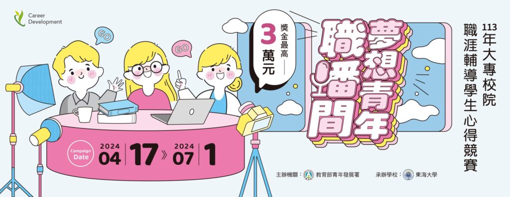 一、旨揭競賽係為鼓勵學生踴躍參與大專校院各項職涯輔導課程與活動,進而關注職涯探索、職涯規劃與職涯發展及實踐。藉由此競賽分享參與職涯輔導課程或活動心得感想與反思,帶動青年一同參與職涯輔導課程與活動,開展多元職涯進路。