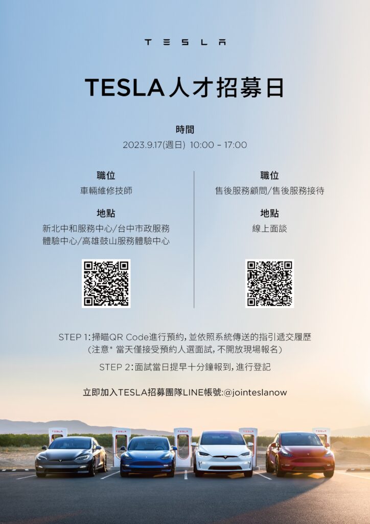9/17(日)【TESLA 人才招募日】將同步在北中南三個服務中心舉辦人才招募活動,歡迎有意願的同學或畢業校友參加!